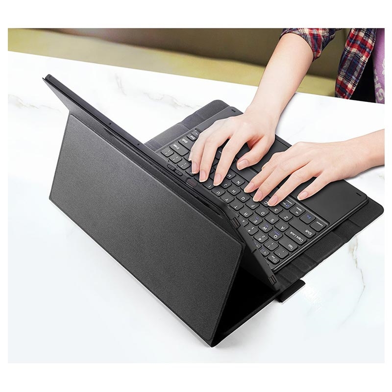 Dankzij het slanke en lichtgewicht ontwerp kunt u deze fantastische Dux Ducis Bluetooth-toetsenbordhoes voor de Samsung Galaxy Tab S9 Ultra gemakkelijk overal mee naartoe nemen. 2-in-1, Bluetooth-toetsenbord en een tablethoes. Het toetsenbord is bevestigd met een dubbele magneet en is zeer stabiel en beweegt niet snel. Het heeft ook een touchpad met instelbare gevoeligheid en een duurzame knop. Geniet van handsfree ervaring met een koffer als ondersteunende standaard in een paar hoeken.