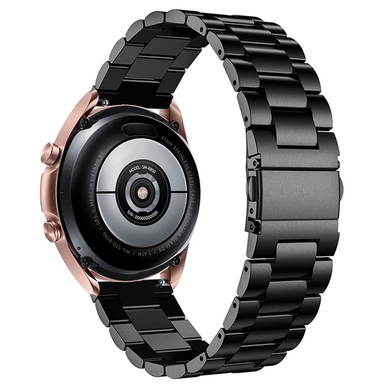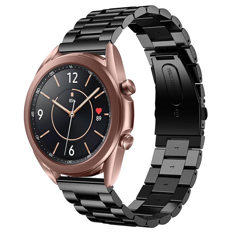 Een ideale vervangende polsband voor de Samsung Galaxy Watch3 die geschikt is voor sportieve en elegante gelegenheden. Deze roestvrijstalen band heeft een klassieke vouwgesp voor gemakkelijke bediening.