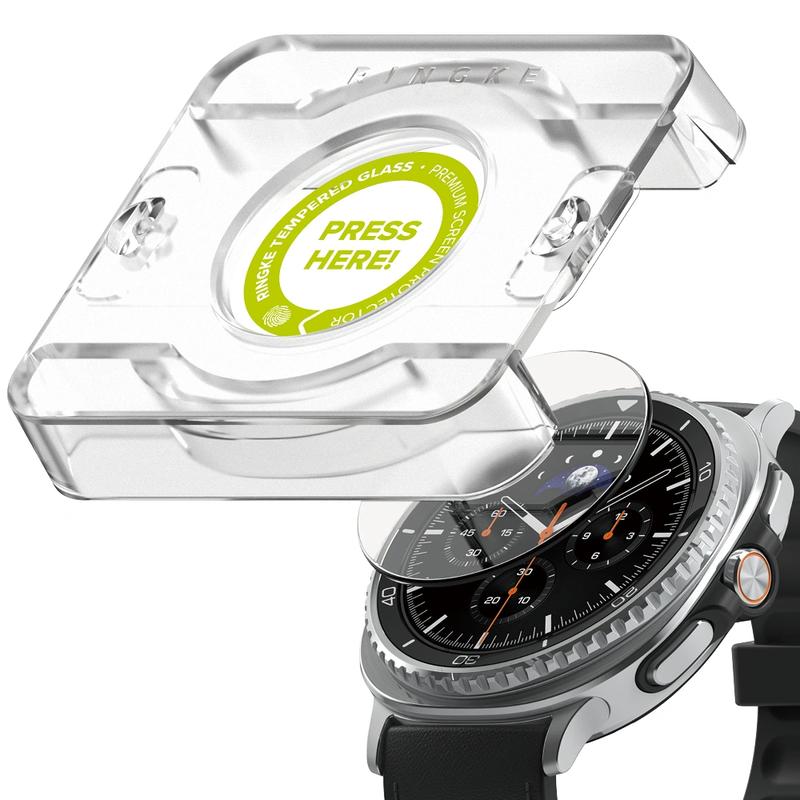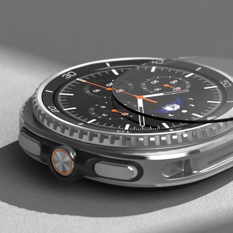 Het Ringke Easy Slide gehard glas biedt de perfecte oplossing voor het beschermen van het scherm van je Samsung Galaxy Watch8 Classic. Het is gemaakt van bewerkt en versterkt gehard glas en heeft een hoge hardheid (9H) waardoor het bestand is tegen krassen, zelfs wanneer het in contact komt met scherpe voorwerpen zoals messen of sleutels. De speciale oleofobe coating minimaliseert het verschijnen van vingerafdrukken en andere verontreinigingen, waardoor het glasoppervlak schoon en helder blijft. Easy Slide is ontworpen om het scherm te beschermen tegen krassen en stoten als gevolg van onverwachte valpartijen. De set bevat een Easy Slide-installatietool voor eenvoudig en nauwkeurig aanbrengen. Dankzij de breedst mogelijke Case Friendly stansvorm is deze compatibel met de meeste hoesjes op de markt en met elk Ringke hoesje.