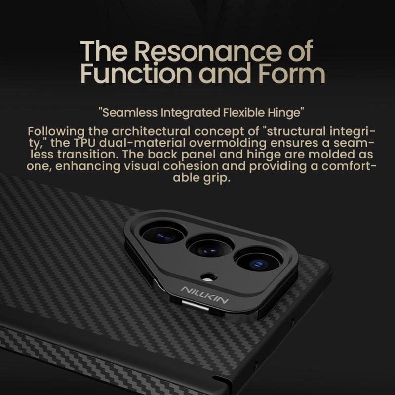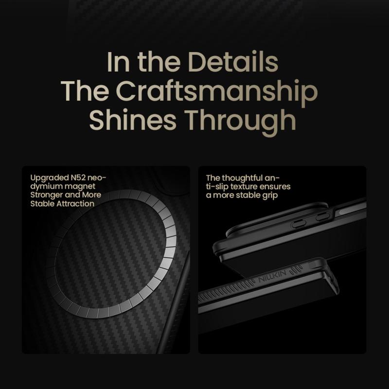Geef je Samsung Galaxy Z Fold7 dezelfde bescherming die vertrouwd wordt in ruimtevaartuitrusting. De Nillkin CarboProp mengt "zwart-gouden" aramidevezel met schokabsorberend TPU om een vederlichte shell te creëren die bestand is tegen alledaagse valpartijen terwijl het vouw-gladde silhouet van de telefoon behouden blijft. Een geïntegreerd metalen cameraframe fungeert als handsfree kickstand en de ingebouwde magneten klikken perfect vast op MagSafe opladers en accessoires - je hebt geen extra platen nodig.