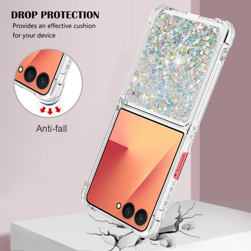 Maak van elke flip een spetterende show. Deze ultradunne TPU case voor de Samsung Galaxy Z Flip7 combineert vloeibare glitterhartjes met schokabsorberende bescherming, en omhult je opvouwbare telefoon in een leuke, opvallende laag die krassen, vallen en alledaagse slijtage op afstand houdt. Precieze uitsparingen laten de scharnieren, luidsprekers en USB-C poorten volledig toegankelijk, terwijl de opstaande randen de cameralenzen en buitenste display afschermen als je de telefoon neerlegt.