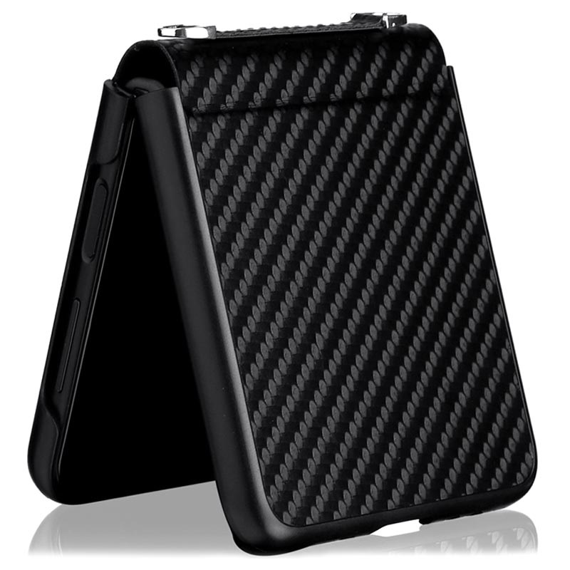 Geef je Samsung Galaxy Z Flip3 5G een nieuwe uitstraling met dit elegante hoesje met koolstofvezel. Deze slanke hoes is bedekt met polyurethaan met een koolstofvezelpatroon voor een stijlvolle uitstraling. Daarnaast kun je met een afneembaar koord met dezelfde opdruk je Samsung Galaxy Z Flip3 5G crossbody of als schoudertas dragen en je handen vrij hebben.