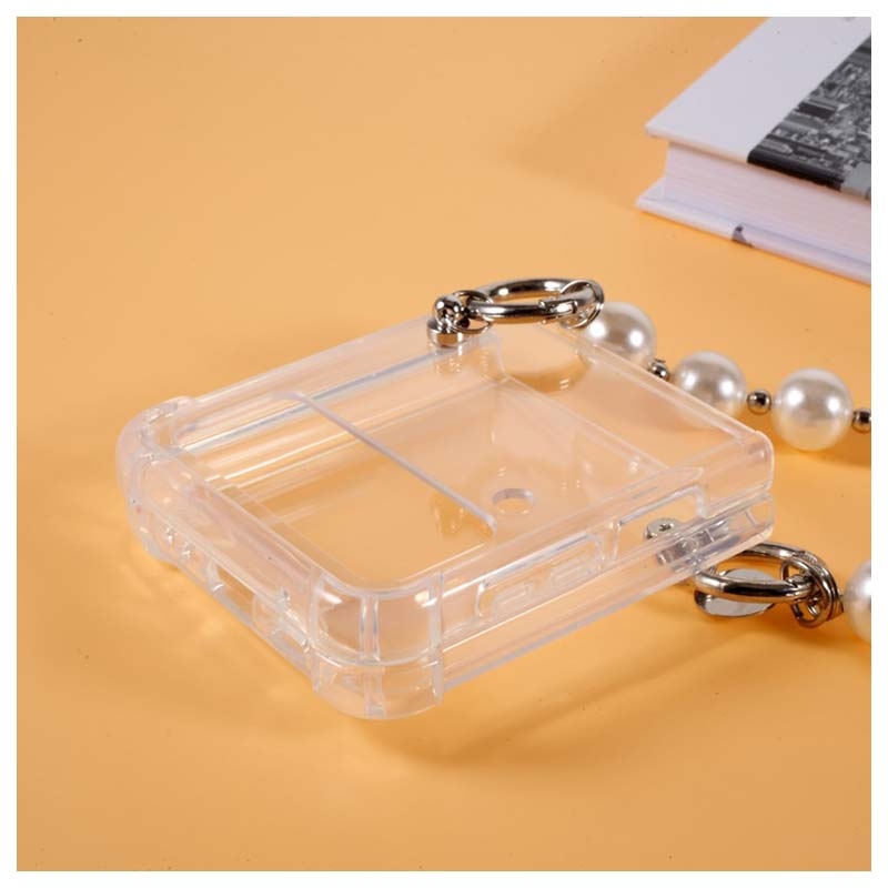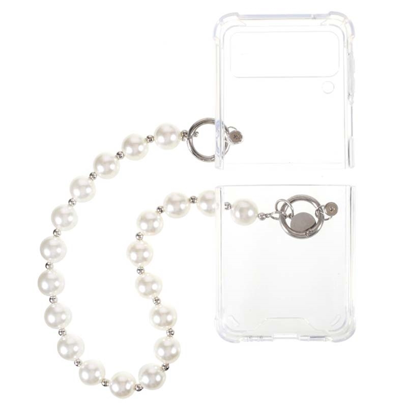 - Modieuze hybride hoes met armband van kunstmatige parels voor de Samsung Galaxy Z Flip3 5G