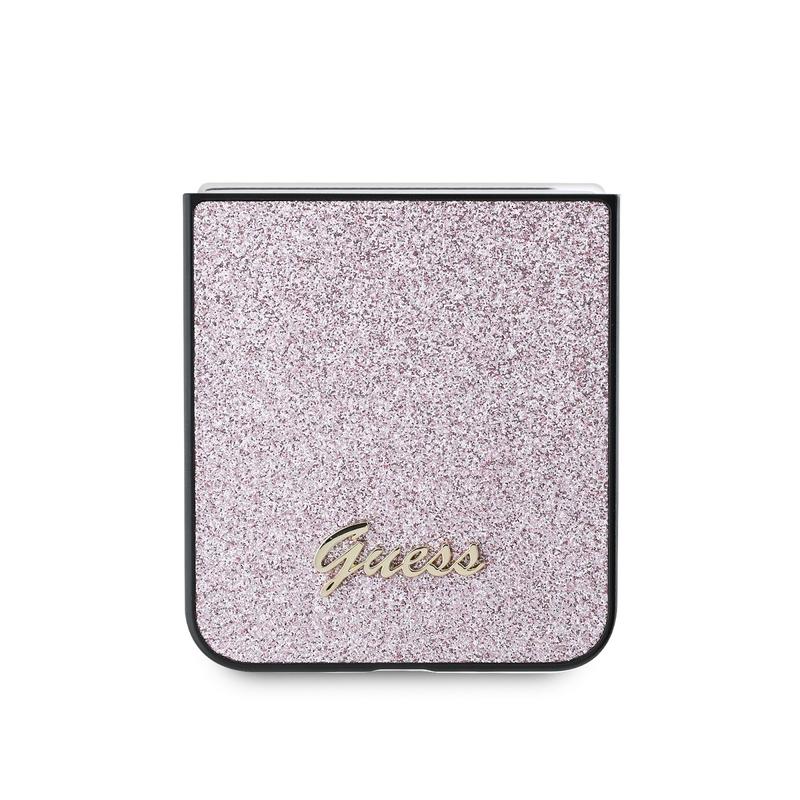 Guess Glitter Flakes Metal Logo Hybride Hoesje voor Samsung Galaxy Z Flip6, Galaxy Z Flip7 FE