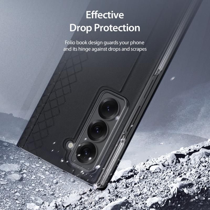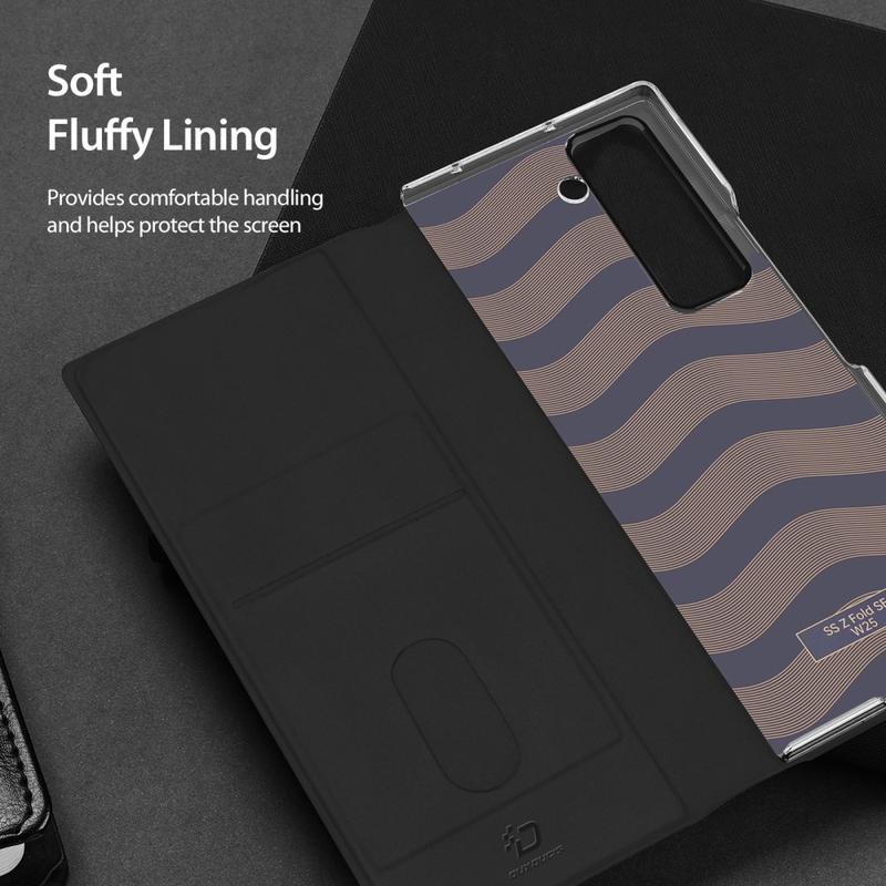 Bied bescherming op het hoogste niveau voor uw kostbare Samsung Galaxy Z Fold Special en geef het een opvallende en opvallende look met deze premium flip hoesje van Dux Ducis. De behuizing heeft lip rond de camera verhoogd voor extra veiligheid en één binnenkaartsleuf voor uw ID -kaart, bankkaart of een andere hoofdkaart.