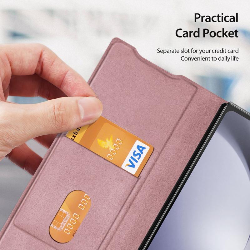 Bied bescherming op het hoogste niveau voor uw kostbare Samsung Galaxy Z Fold6 en geef het een opvallende en opvallende look met deze premium flip hoesje van Dux Ducis. De behuizing heeft lip rond de camera verhoogd voor extra veiligheid en één binnenkaartsleuf voor uw ID -kaart, bankkaart of een andere hoofdkaart.