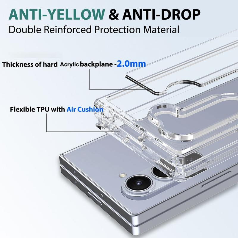 Dit accessoire maakt gebruik van een combinatie van acryl en TPU om je smartphone in ongerepte staat te houden. Ondertussen voorkomen de versterkte, schokabsorberende hoeken valschade, terwijl het transparante ontwerp het prachtige ontwerp van je Samsung Galaxy Z Fold6 laat zien.