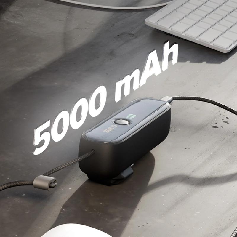 - Ingebouwde USB-C kabel - Geen extra kabels nodig, altijd klaar om op te laden.