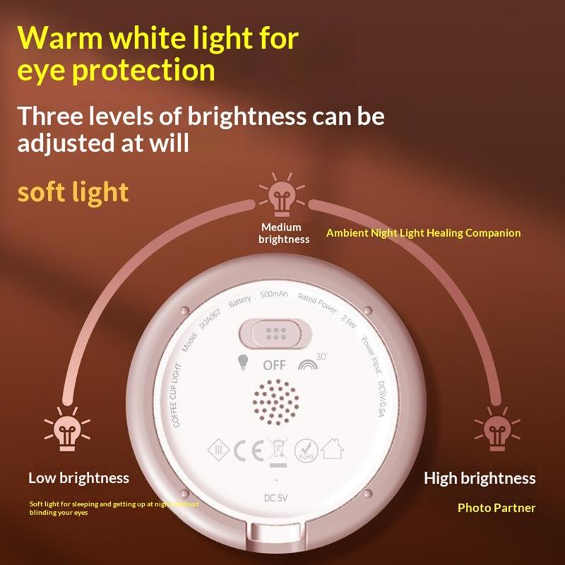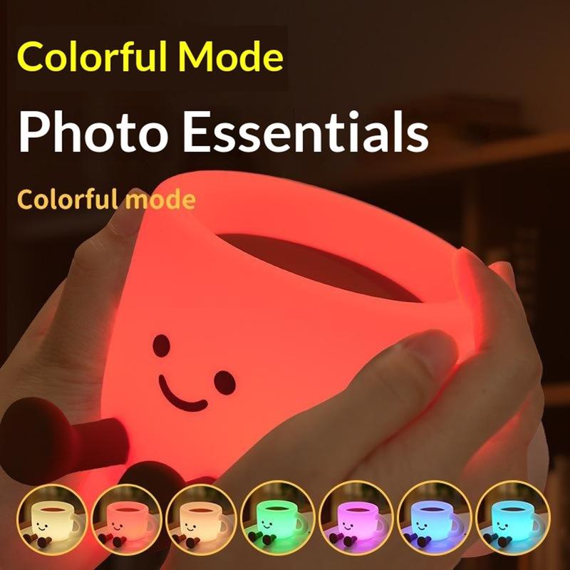 Voeg gezelligheid toe aan elke kamer met dit schattige nachtlampje in de vorm van een koffiekopje - een leuke bedlamp die ook dienst doet als telefoonstandaard en draagbaar sfeerverlichting. Met 7 kleurveranderende LED-opties en 3 helderheidsniveaus is het perfect voor ontspannen avonden, een zachte nachtelijke gloed of het creëren van sfeer voor foto's en video's. De eenvoudige tikbediening maakt het gebruik moeiteloos, terwijl de automatische uitschakeltimer van 30 minuten helpt energie te besparen en voorkomt dat het licht de hele nacht blijft branden. Het is gemaakt van zacht, voedselveilig siliconen, voelt prettig aan en kan zelfs dienst doen als stressverlichtend knijpspeeltje. Oplaadbaar via USB-C, gemakkelijk mee te nemen op reis, kamperen of voor gezellige opstellingen waar dan ook.
