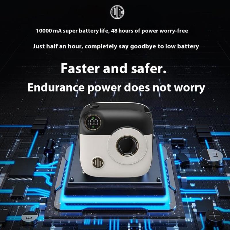 - Uniek ontwerp: Het cameravormige ontwerp onderscheidt hem van standaard powerbanks.