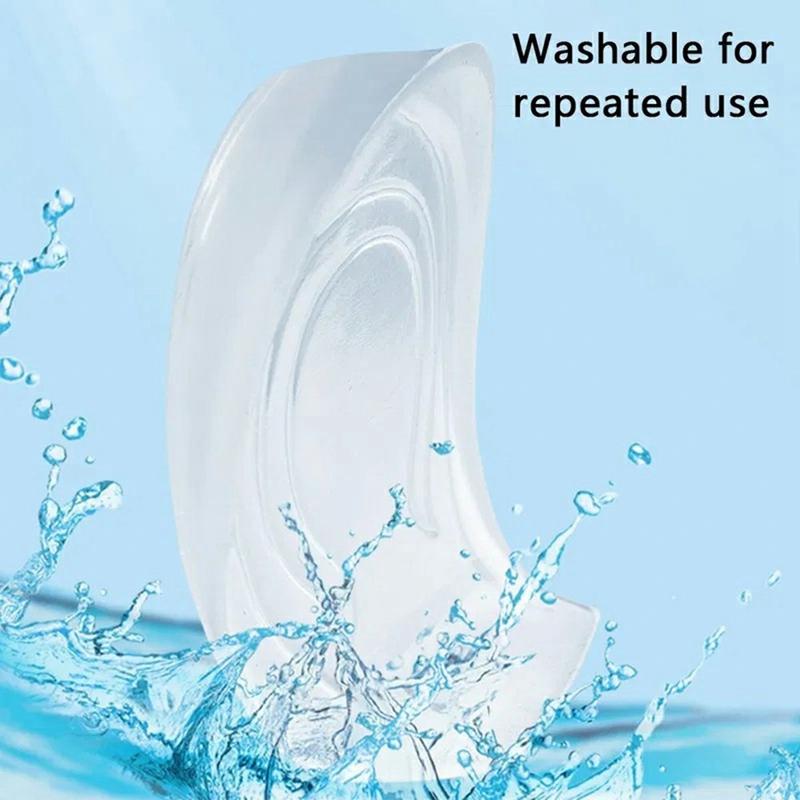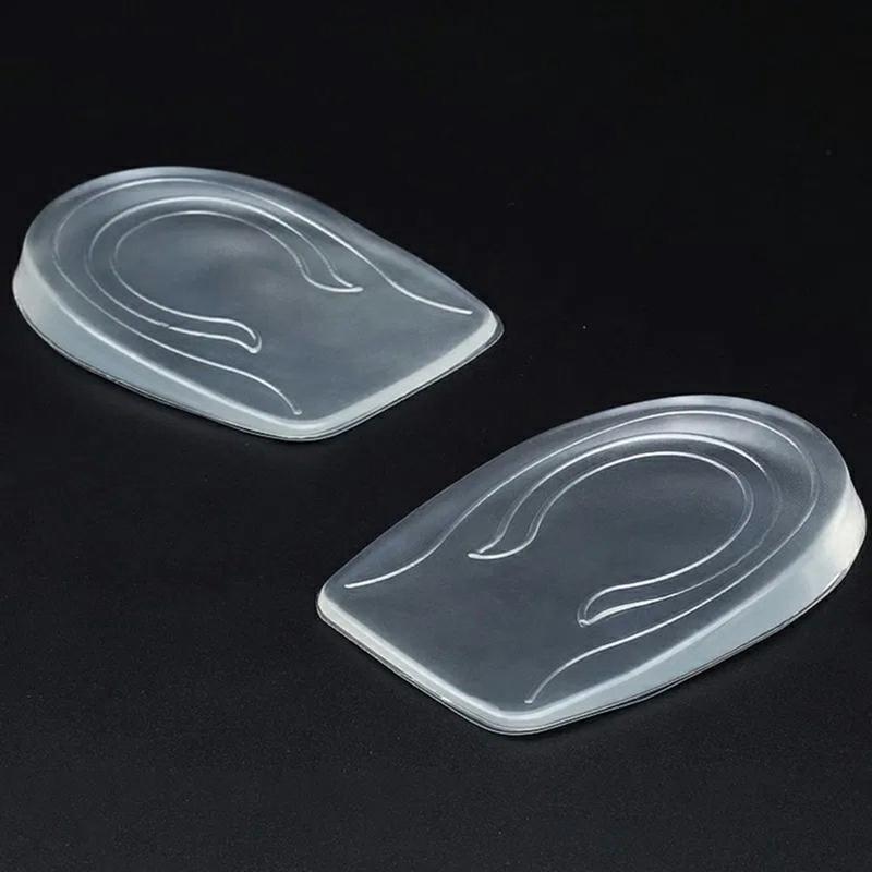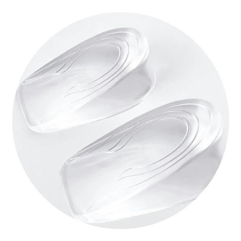 Bereik een comfortabel groter uiterlijk en geniet van verbeterde voetondersteuning met deze Transparante Silicone Inlegzolen met 2cm Hogere Hiel - omdat elke stap telt in de richting van een betere houding en meer zelfvertrouwen.