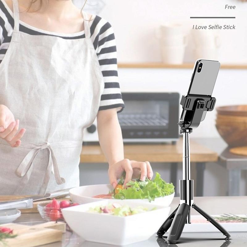 Selfieshow L02 Bluetooth Selfie Stick Statief - 1 m uitschuifbaar, afstandsbediening, 360° Rotatie