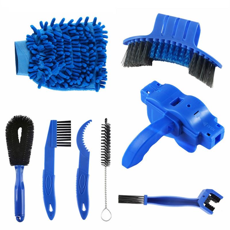 Set fietskettingreiniger mountainbike kettingborstel scrubber wasgereedschap - 8 stuks