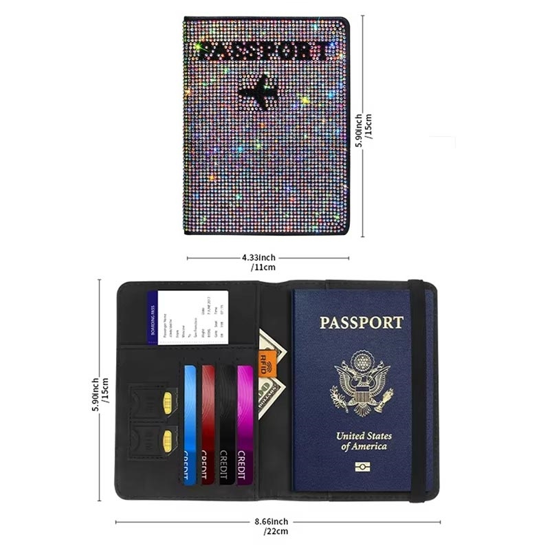 Reis in stijl met de strass paspoorthouder & bagagelabelset, een glamoureus accessoire duo ontworpen voor elegantie en functionaliteit. Gemaakt van duurzaam polyurethaan en versierd met schitterende strass-steentjes, brengt deze bijpassende set luxe en glans aan elke reis.
