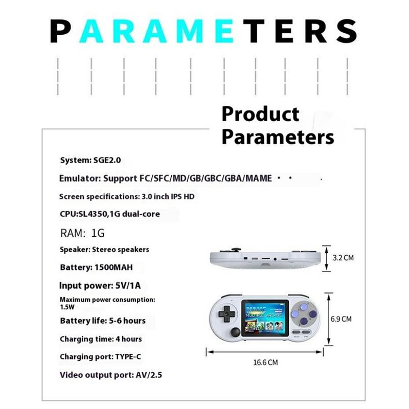 Herontdek klassieke en moderne titels onderweg of thuis met de SF2000 Portable Retro Gaming Console. Dit compacte systeem is ontworpen voor zowel nostalgieliefhebbers als nieuwe gamers en heeft een 3.0 inch IPS-scherm, meer dan 6000 ingebouwde games en naadloze tv-uitvoer via een AV-kabel. Geniet van stabiel draadloos gamen dankzij de 2.4G-technologie en profiteer van de lange batterijlevensduur voor ononderbroken sessies.