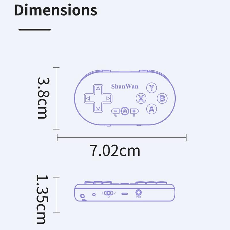 Verander elke korte pauze in gametijd met de SHANWAN mini Bluetooth gamecontroller. De controller is gebouwd voor draagbaar spelen, is ultralicht met slechts 0,024 kg en compact genoeg om in een zak te stoppen, terwijl hij toch een responsieve besturing en vibratiefeedback biedt voor een meeslepender gevoel. Met een stabiele Bluetooth-verbinding en handig opladen via USB-C is het een slimme keuze voor mobiele gamers en iedereen die een handige controller wil voor casual sessies op compatibele apparaten.