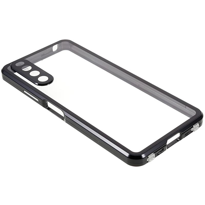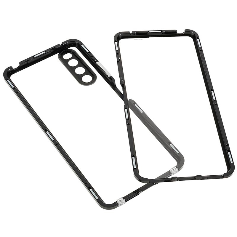 - Sony Xperia 10 IV-hoes met een metalen frame en gehard glas voor voor- en achterkant