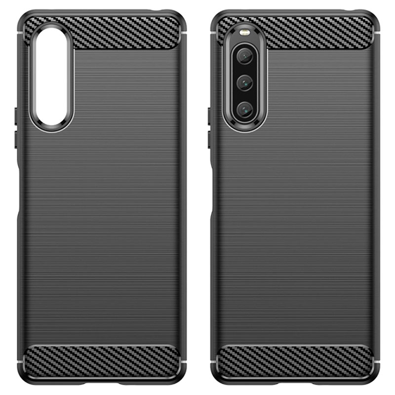 Geborsteld TPU Hoesje voor Sony Xperia 10 V - Koolstofvezel