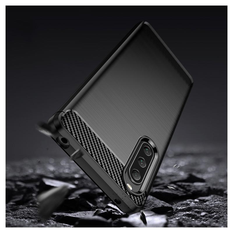Bescherm je Sony Xperia 10 V tegen ongewenste beschadigingen en vallen met deze coole geborstelde TPU hoes. Deze flexibele hoes heeft chique koolstofvezelaccenten die bijdragen aan de stijl en moderne uitstraling van je Sony Xperia 10 V.