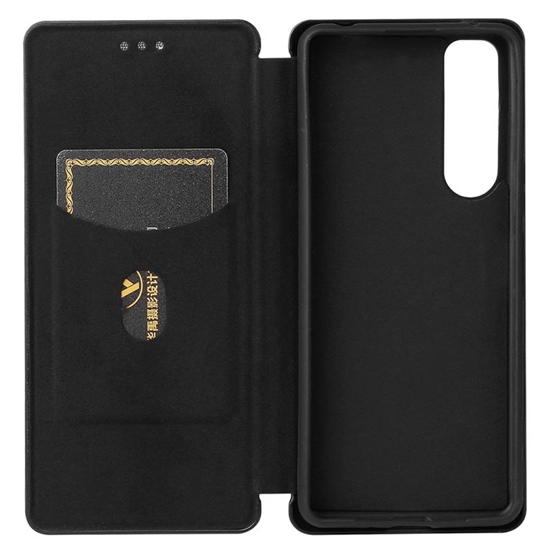 Bewaar je Sony Xperia 5 III veilig in deze flip-case met koolstofvezelstructuur.