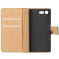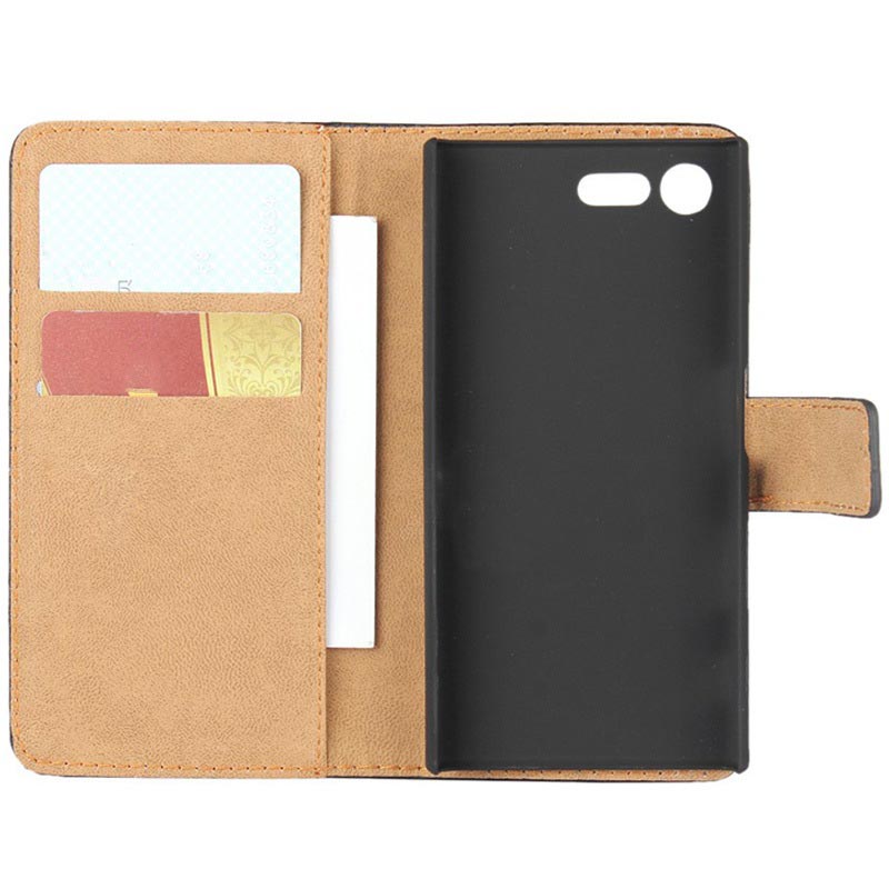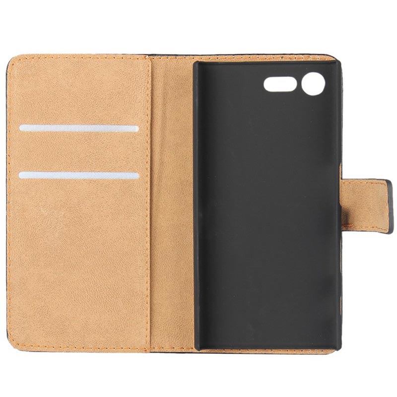 Hoogwaardige materialen, all-round bescherming en geweldige functionaliteit is wat je krijgt met de slanke portemonnee lederen hoes voor Sony Xperia X Compact.
