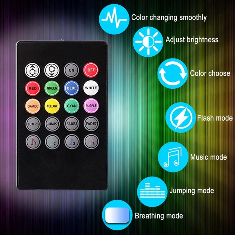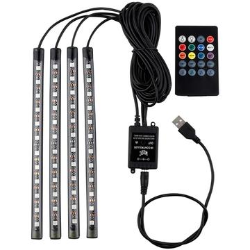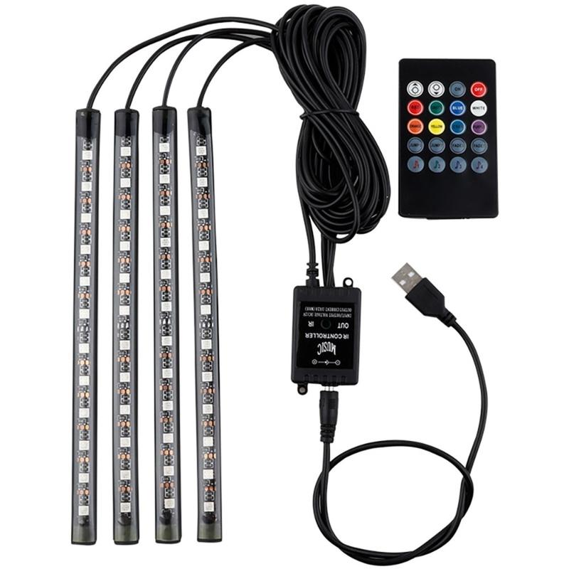 Sound-Activated interieur neon auto LED Strip Light met draadloze afstandsbediening en USB-poort - 4 stuks, 36 LED's