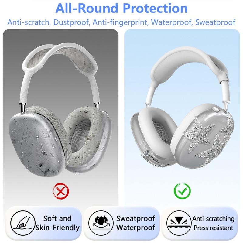 Voeg een oogverblindende laag bescherming toe aan je AirPods Max met dit elegante, glinsterende sterontwerp. Deze siliconen set bestaat uit een hoofdbandhoes, oorkaphoes en oorkussentje en beschermt elk belangrijk deel van je hoofdtelefoon tegen slijtage. Geniet van zowel stijl als functionaliteit zonder afbreuk te doen aan comfort of geluidskwaliteit.