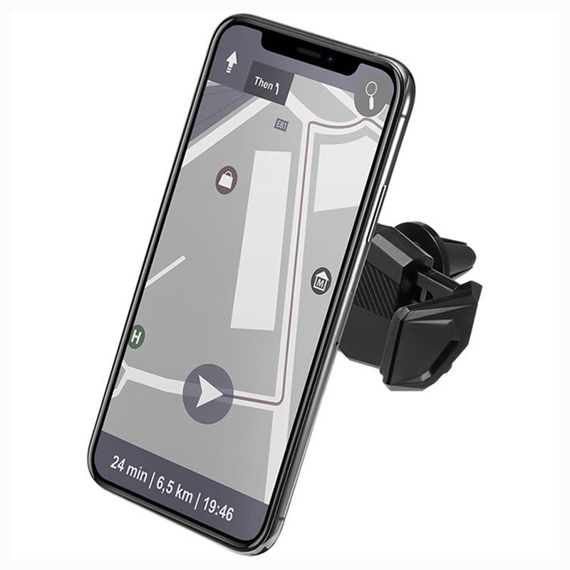 Deze compacte houder heeft een eenvoudig maar effectief montagemechanisme waarmee u hem in de meeste voertuigen aan een ventilatierooster kunt bevestigen. Daarna kun je met het draaiende gewricht het in elke hoek instellen en je telefoon gebruiken voor navigatie, veilig meldingen controleren, bellen en gebeld worden, muziek afspelen en meer.