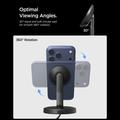 De ergonomische standaard heeft een vaste kantelhoek van 30 graden die een comfortabele kijkpositie biedt, waardoor hij ideaal is voor het lezen van berichten, videogesprekken of het bekijken van content tijdens het opladen. De oplader ondersteunt zowel staande als liggende stand, waardoor u flexibel bent bij het browsen, streamen of handsfree gebruiken van apps. Het minimalistische ontwerp past gemakkelijk in bureaus, nachtkastjes en kantooropstellingen.