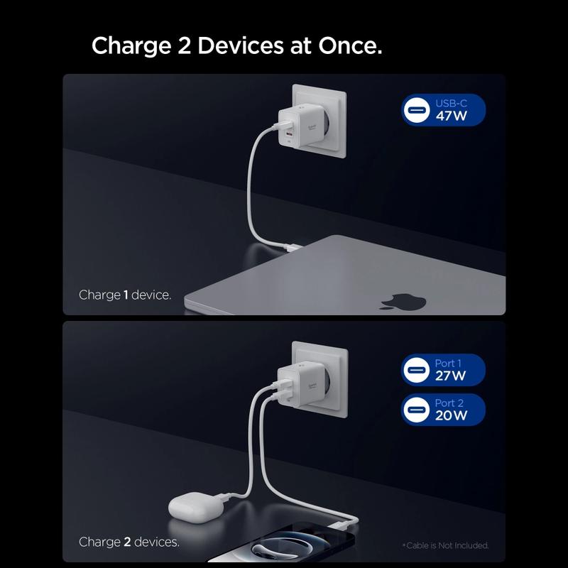 • Spigen Essential EE472EU 2-poorts wandoplader - 47W GaN Pro Dual USB-C snelle oplader