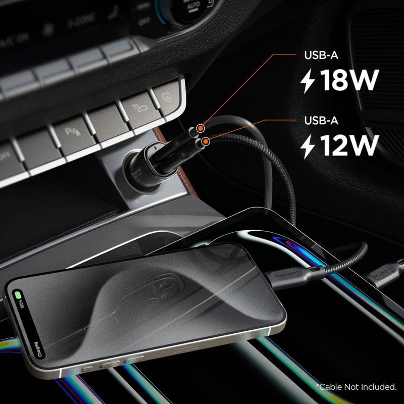 Rust uw voertuig uit met de Spigen Essential EV302 2-poorts autolader en zorg ervoor dat uw apparaten van stroom voorzien blijven en klaar zijn voor gebruik, waar uw reis u ook naartoe brengt.