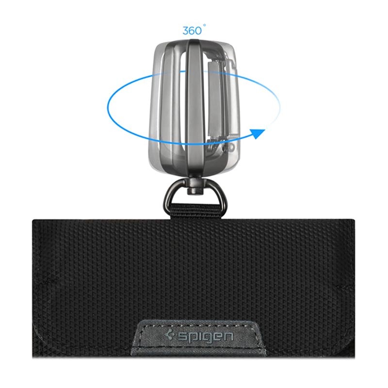 - Bevat een karabijnhaak van 360 graden om het Spigen-zakje aan een rugzak of tas te bevestigen