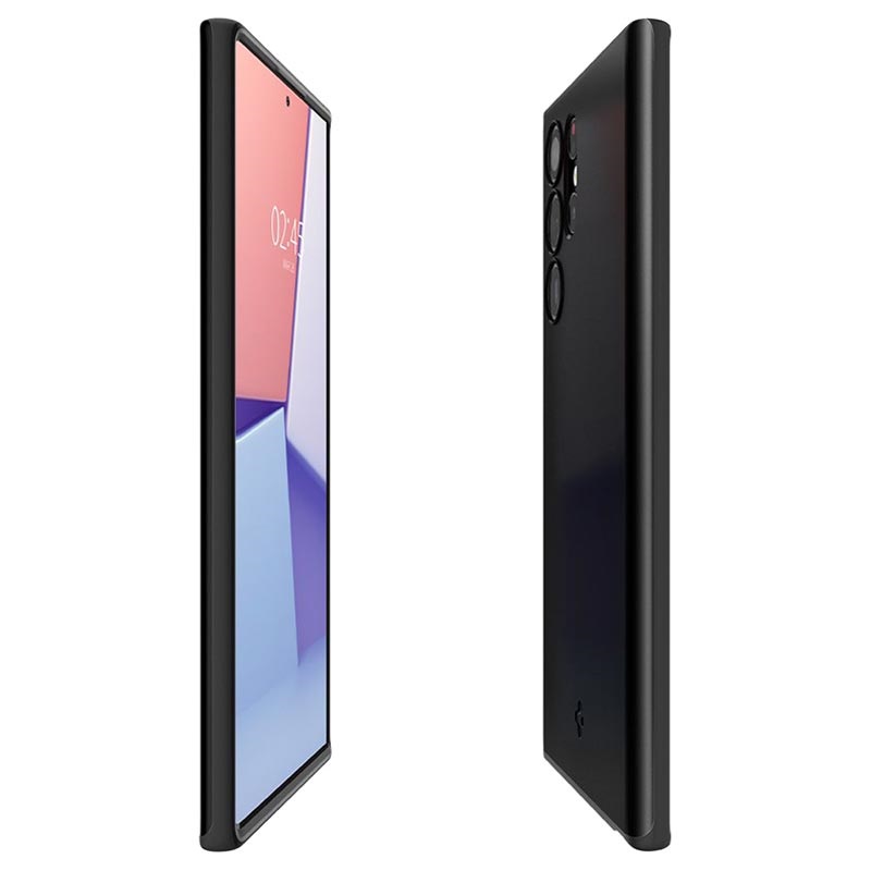 Spigen's Thin Fit Samsung Galaxy S22 Ultra 5G beschermhoes heeft een ultradun, minimalistisch ontwerp dat het originele gevoel van de telefoon behoudt.