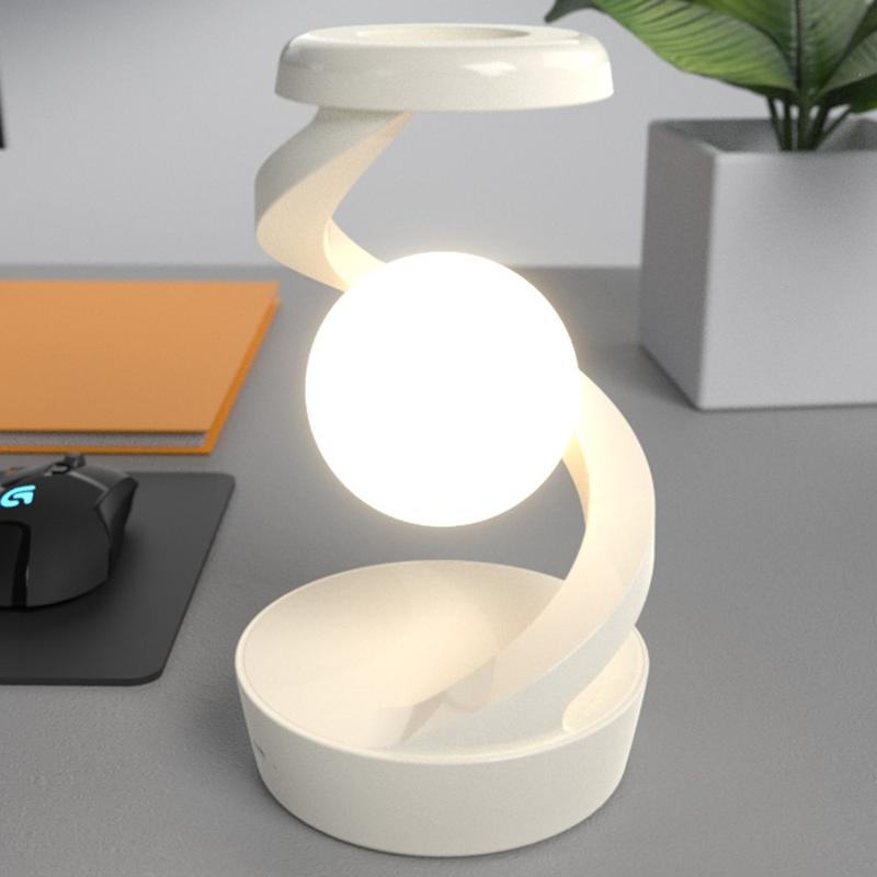 Verhoog je ruimte met de Spiral Levitation Floating Light, een innovatief RGB nachtlampje met een futuristisch ontwerp. Met een draadloos oplaadstation voor Qi-compatibele apparaten combineert deze slanke zwarte lamp stijl en functionaliteit. De lamp is perfect voor moderne interieurs en biedt aanpasbare sfeerverlichting terwijl je telefoon van stroom wordt voorzien.