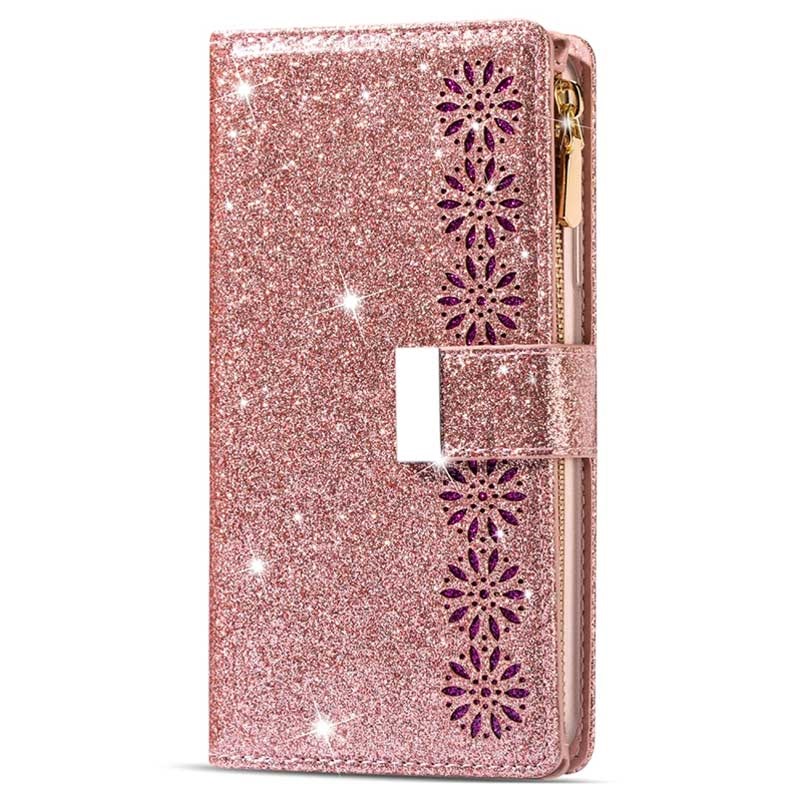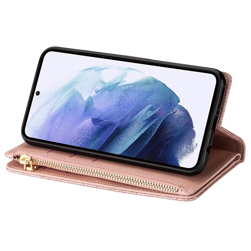 De meest elegante manier om je Samsung Galaxy S22 5G te dragen is afgeschermd met dit sprankelende portemonnee-etui. Het biedt uitstekende bescherming rondom, terwijl de sterke magnetische sluiting al je waardevolle spullen en je Samsung Galaxy S22 5G veilig houdt. De case heeft meerdere kaartsleuven en een groot ritsvak, terwijl de opvouwbare achterkant ook dienst doet als standaard voor gemakkelijk media kijken. Deze stijlvolle portemonnee-hoes voor de Samsung Galaxy S22 5G wordt geleverd met een handig koord voor extra veiligheid op drukke plaatsen.