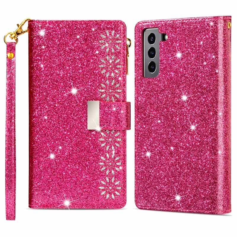 De meest elegante manier om je Samsung Galaxy S22 5G te dragen is afgeschermd met dit sprankelende portemonnee-etui. Het biedt uitstekende bescherming rondom, terwijl de sterke magnetische sluiting al je waardevolle spullen en je Samsung Galaxy S22 5G veilig houdt. De case heeft meerdere kaartsleuven en een groot ritsvak, terwijl de opvouwbare achterkant ook dienst doet als standaard voor gemakkelijk media kijken. Deze stijlvolle portemonnee-hoes voor de Samsung Galaxy S22 5G wordt geleverd met een handig koord voor extra veiligheid op drukke plaatsen.