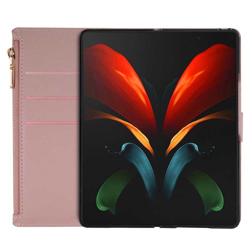 Kleed je Samsung Galaxy Z Fold4 in dit dromerige portemonnee-etui met veel praktische vakken. Deze portemonnee-hoes is versterkt met een schokbestendige TPU-binnenschaal en zorgt voor een uitstekende algehele bescherming tegen stoten en deuken. Naast meerdere kaartsleuven en geldcompartimenten, heeft deze portemonnee-etui een vak met ritssluiting waarin u wat geld en kleinigheden kunt opbergen. Het glanzende ontwerp zorgt ervoor dat je Samsung Galaxy Z Fold4 er prachtig uitziet, terwijl je hem met een afneembare riem veilig en elegant kunt dragen.
