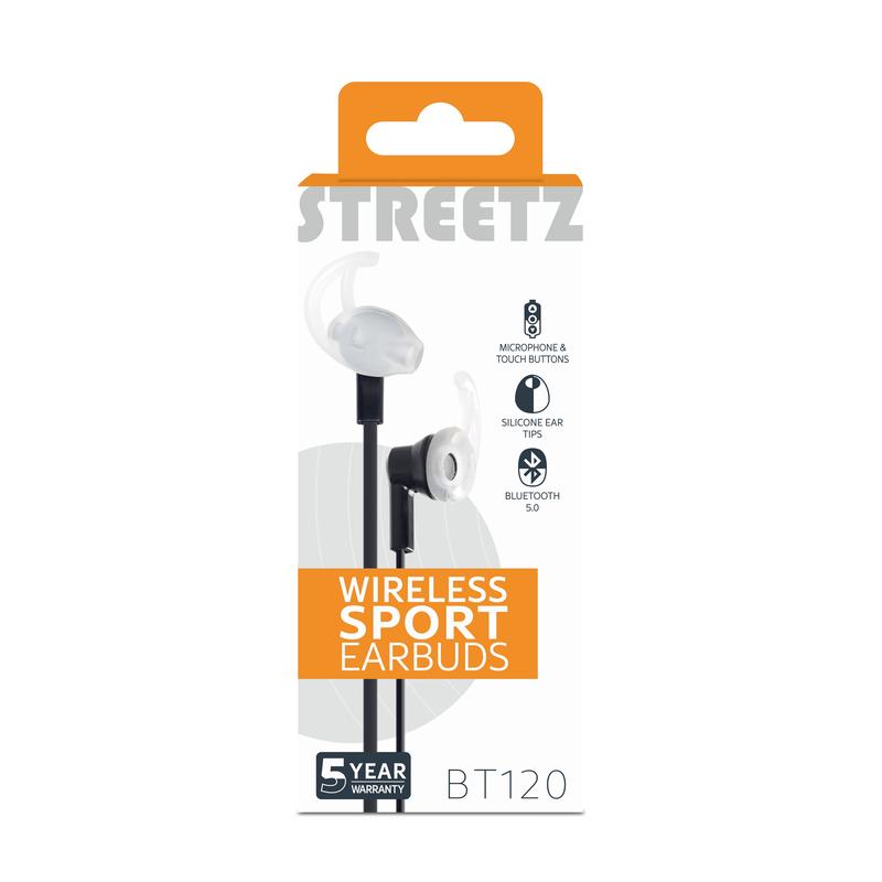 Streetz Stay-in-Ear Bluetooth-hoofdtelefoon met microfoon - Draadloze sportoortelefoon met media-/oproepknoppen, Bluetooth 5, kabel van 1,2 m