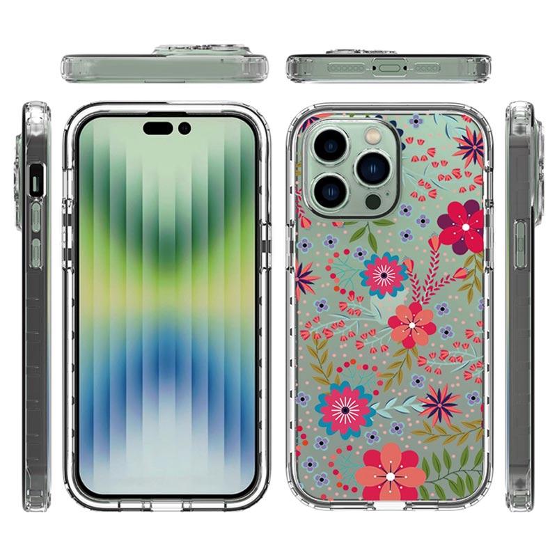 Benadruk de schoonheid van je iPhone 14 Pro Max met dit prachtige hybride hoesje uit de Sweet Armor Series. Dit mooie hoesje biedt volledige bescherming voor je iPhone 14 Pro Max dankzij een tweedelig ontwerp dat bestaat uit een achterkant van flexibel TPU materiaal met versterkte hoeken en een solide kunststof voorframe met een verhoogde rand rond het scherm. Daarbovenop zal het bewonderenswaardige ontwerp dat op de transparante hoes is gedrukt, je iPhone 14 Pro Max doen opvallen.