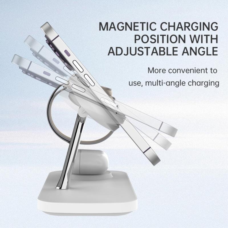 - 3-in-1 gemak: Ondersteunt het gelijktijdig opladen van telefoons, oortelefoons en horloges, waardoor je tijd en ruimte bespaart.