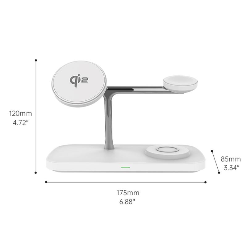 T255 Qi2 15W magnetische draadloze oplader - 3-in-1 desktop oplaadstandaard voor horloge, koptelefoon en telefoon