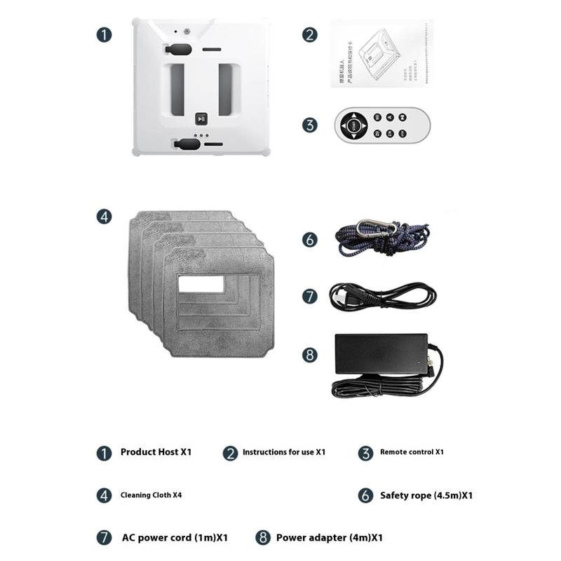 - UPS-noodvoeding: In het geval van een stroomstoring wordt de geïntegreerde lithiumbatterij van 650 mAh geactiveerd, waardoor de robot tot 25 minuten lang stevig aan het glas bevestigd blijft en een alarmsignaal geeft om de gebruiker aan te sporen in te grijpen.