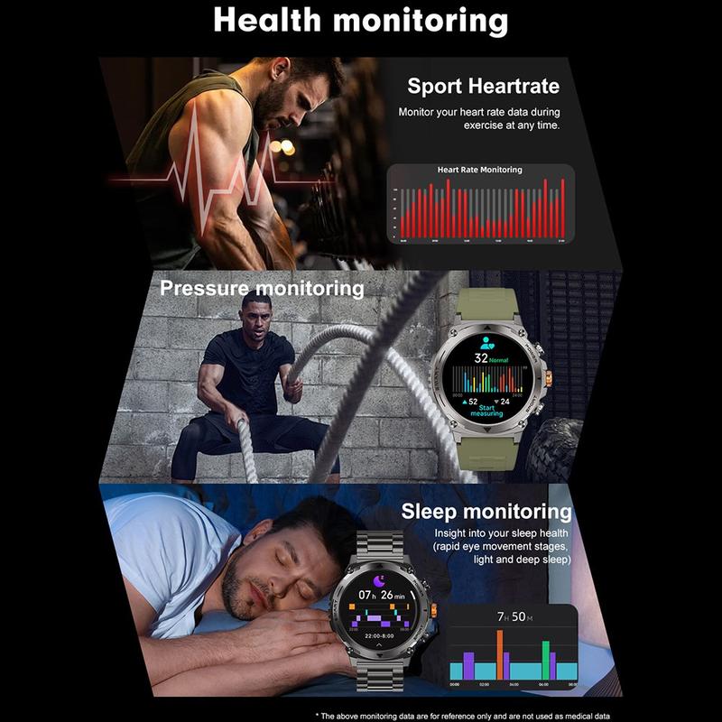 - Gezondheidsmonitoring: hartslag, bloeddruk en SpO2-monitoring voor dagelijkse inzichten