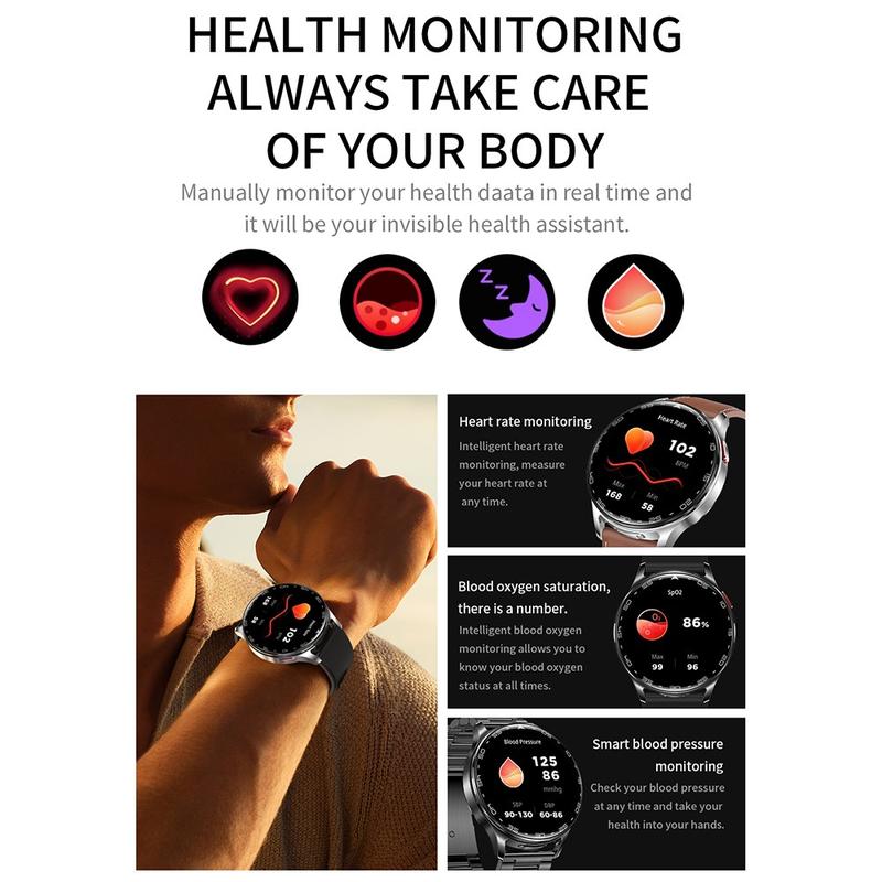 Geniet van handsfree bellen, meeslepende muziek en de klok rond gezondheidstracking in één compact apparaat. De T97 combineert een 1,39 inch display met hoge resolutie met uitklapbare Bluetooth oordopjes die in het horloge worden opgeladen, zodat je alles in één hebt voor werk, training en reizen.