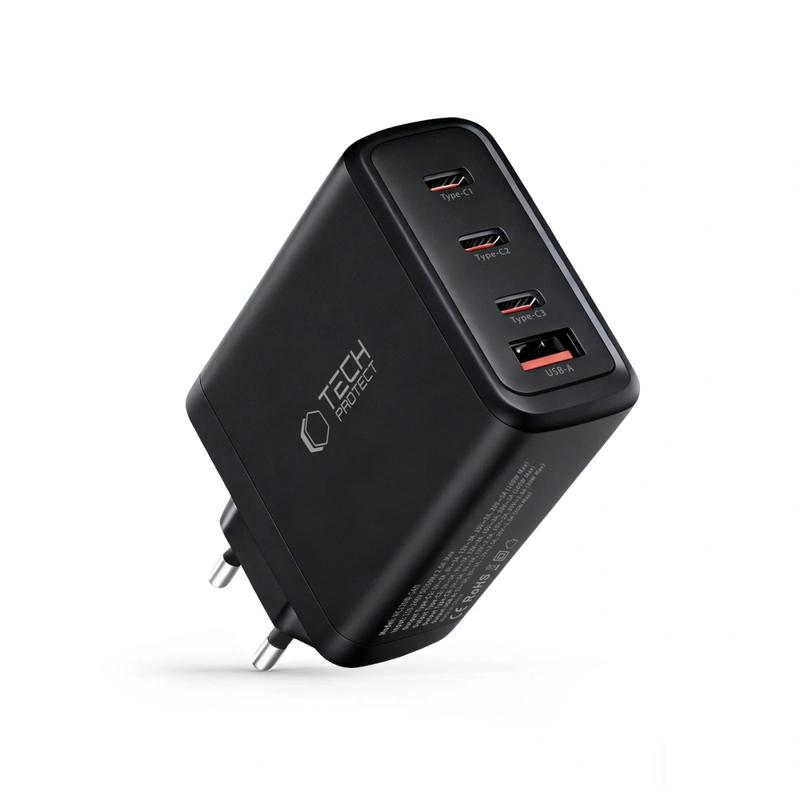 • Tech-Protect NC120W GaN-oplader met 3x USB-C-poorten, 1x USB-A-poort - 120W snelladen