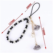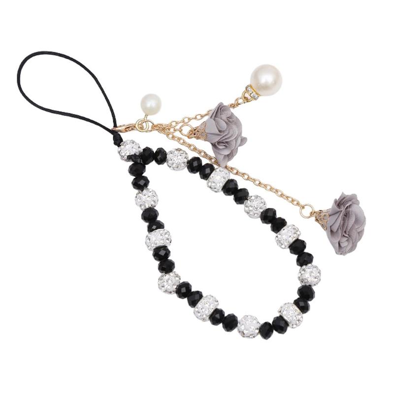 Telefoonhanger met rozenbloem-bedeltjes en kristallen kraaltjes - Zwart