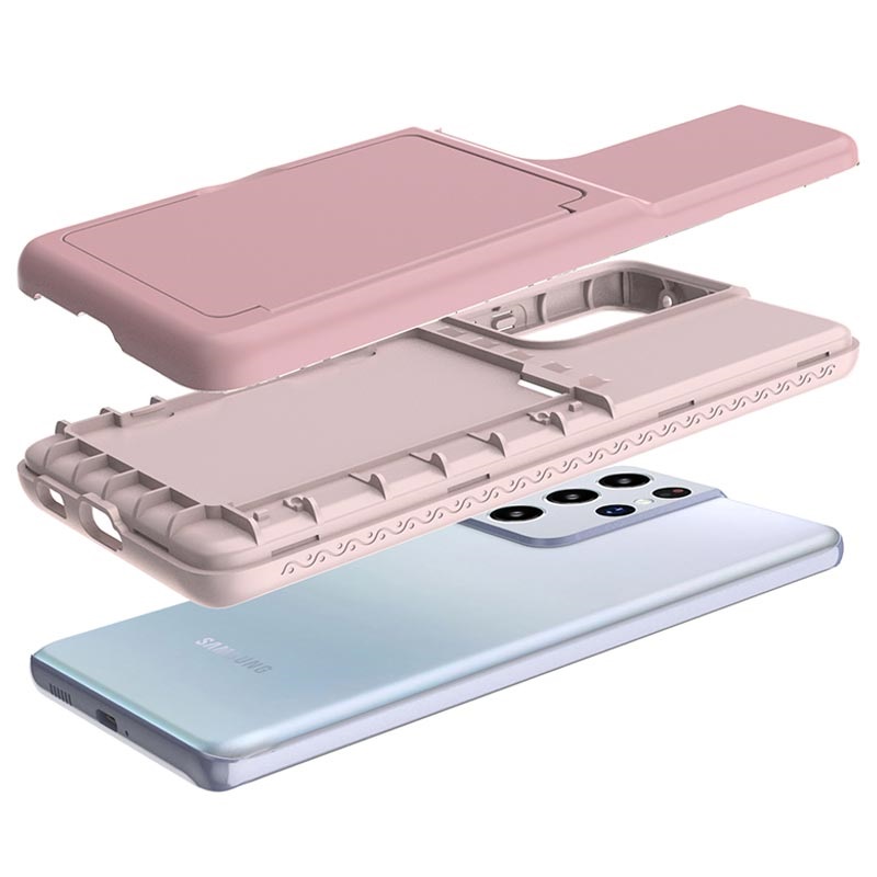 Verfris de look van je Samsung Galaxy S21 Ultra 5G met deze slanke Hybrid Case! Om er altijd perfect uit te zien, is er een gemakkelijk toegankelijke spiegel. Maak winkelen gemakkelijker met twee creditcardsleuven. Versterkte randen beschermen je Samsung Galaxy S21 Ultra 5G extra.
