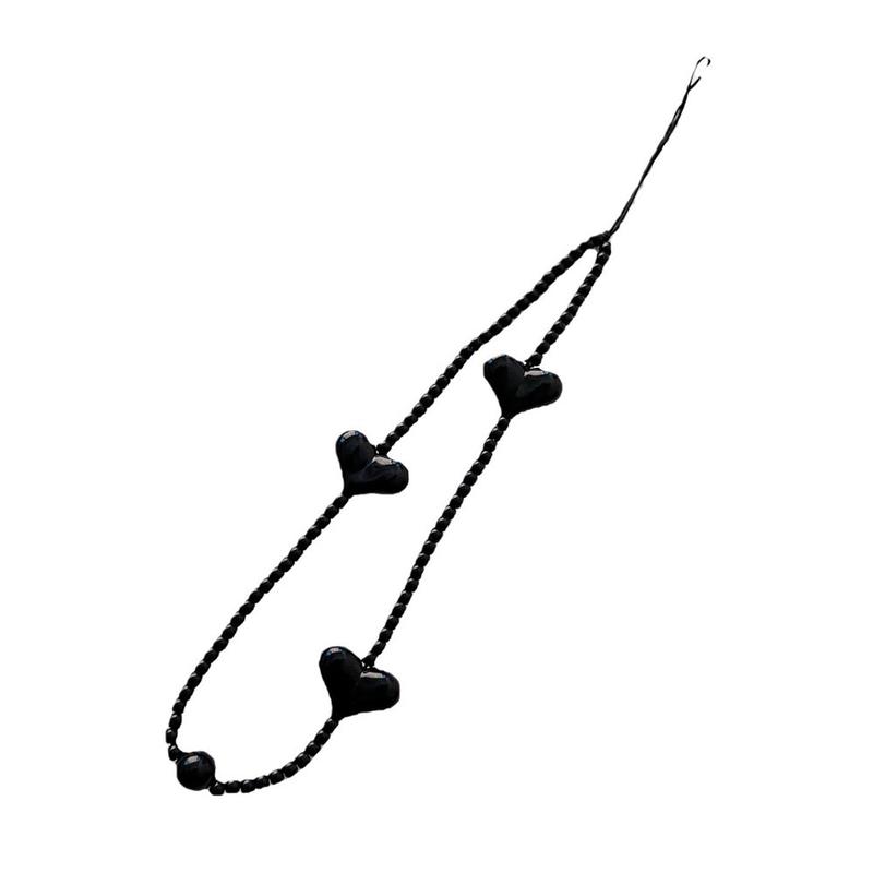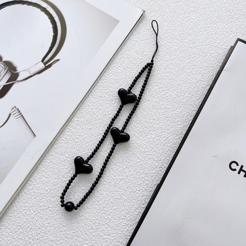 Geef je telefoon een speels en stijlvol tintje met deze 23.5cm lange telefoonriem met hartvormige kralen. De riem is gemaakt van glanzende zwarte hartvormige acrylkralen en dient zowel als decoratief accessoire als praktische polsriem voor dagelijks gebruik.