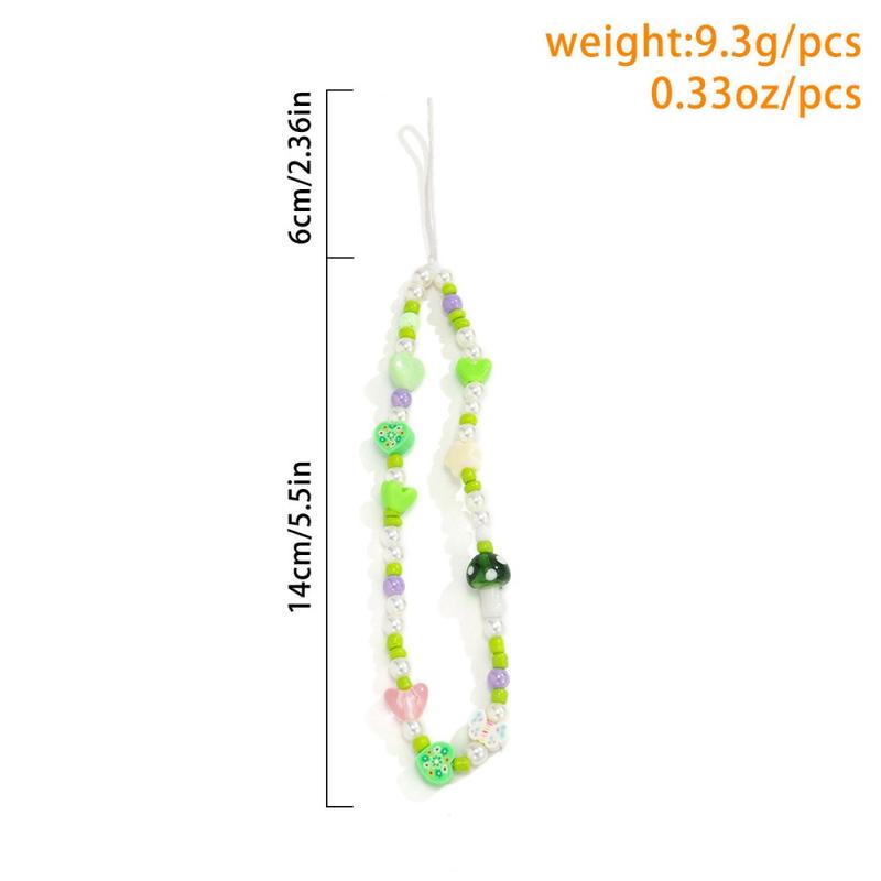 Geef je telefoon een schattig en speels tintje met dit 20cm lange telefoonkoord met paddestoel- en parelbedeltjes. Het is ontworpen als zowel decoratief accessoire als praktische polsband en heeft een leuke mix van paddestoelbedeltjes, imitatieparels, hartjes, bloemen en sterren voor een stijlvolle look voor elke dag.