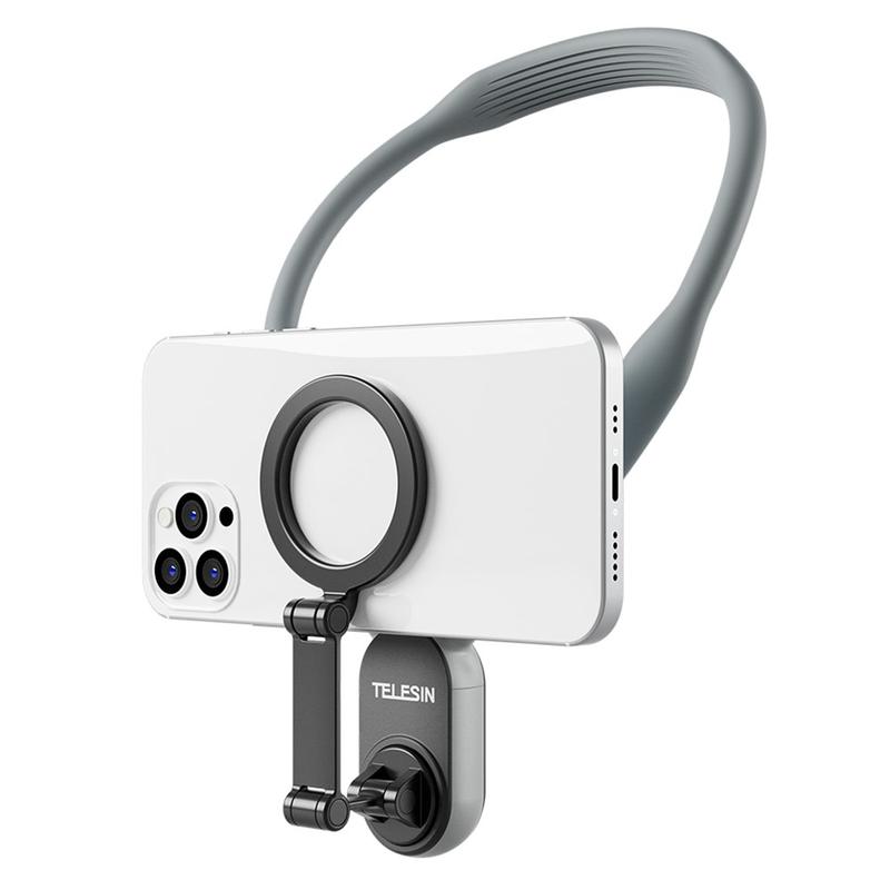 TELESIN MNM-001 Voor iPhone 12 / 13 / 14 / 15/ 16 Silicone nek Mount magnetische Selfie Stick telefoon nek houder - Grijs
